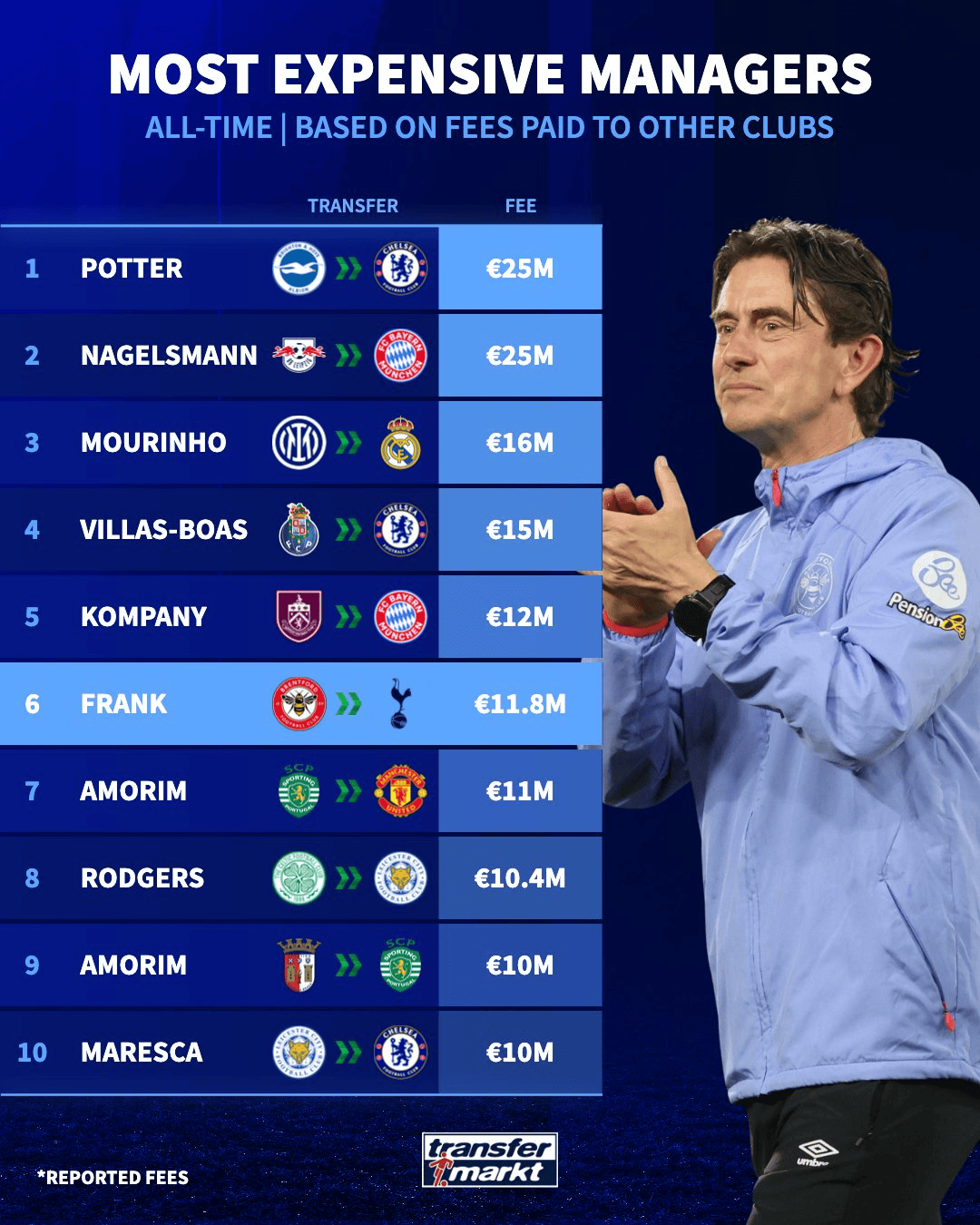 弗兰克(布伦特福德→托特纳姆热刺)——1180万欧